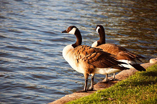 Leading lines are just what the description says. They are lines in the picture, whether real lines or inferred lines that lead your eye to the subject and draw you in or just lead you through the picture. Look at the picture of the railroad tie above. The cracks in the wood lead your eye to the bolt. In the picture of the geese, the lines of the waves lead you from the left side of the picture to the geese. Look for lines in fences, in paths, in roads, in railings. They can be the bricks on the wall, or slats of siding on a building. Here are a few more examples. Can you see the lines?